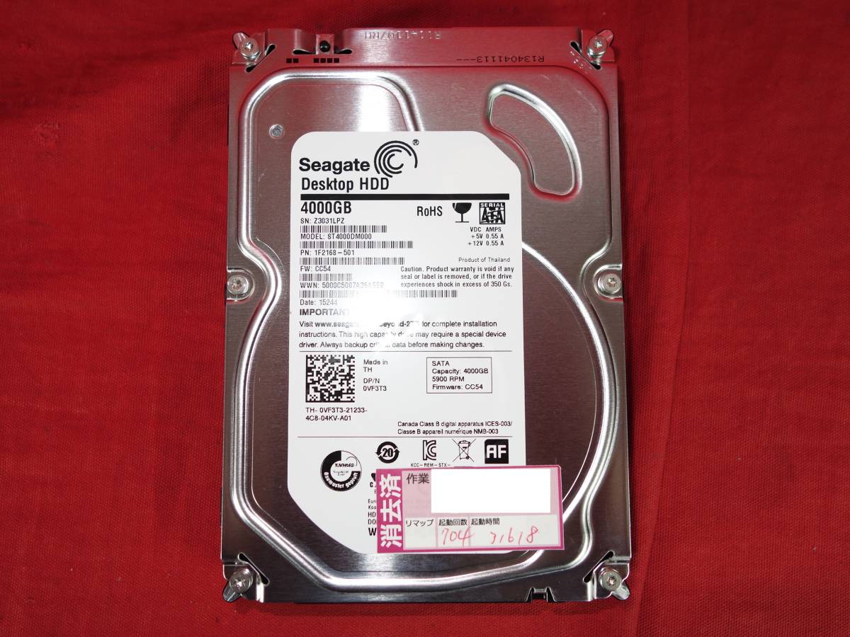 Seagate ST4000DM000 【4TB】 中古 SATA 3.5インチ 内蔵ハードディスク 【10日間保証】 中古SEAGATE製HDD ST4000DM000 4TB SATA600 9000〜10000時間以内の検索結果