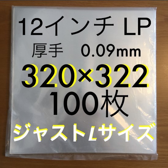 レコード用ビニール 12インチ / LP 0.09mm 320×322 100枚 レコード外袋 厚手 厚口 日本製 保護袋 ジャストL ジャケットカバー LP ジャストLサイズ 外袋□200枚□0.09mm□12インチ□
