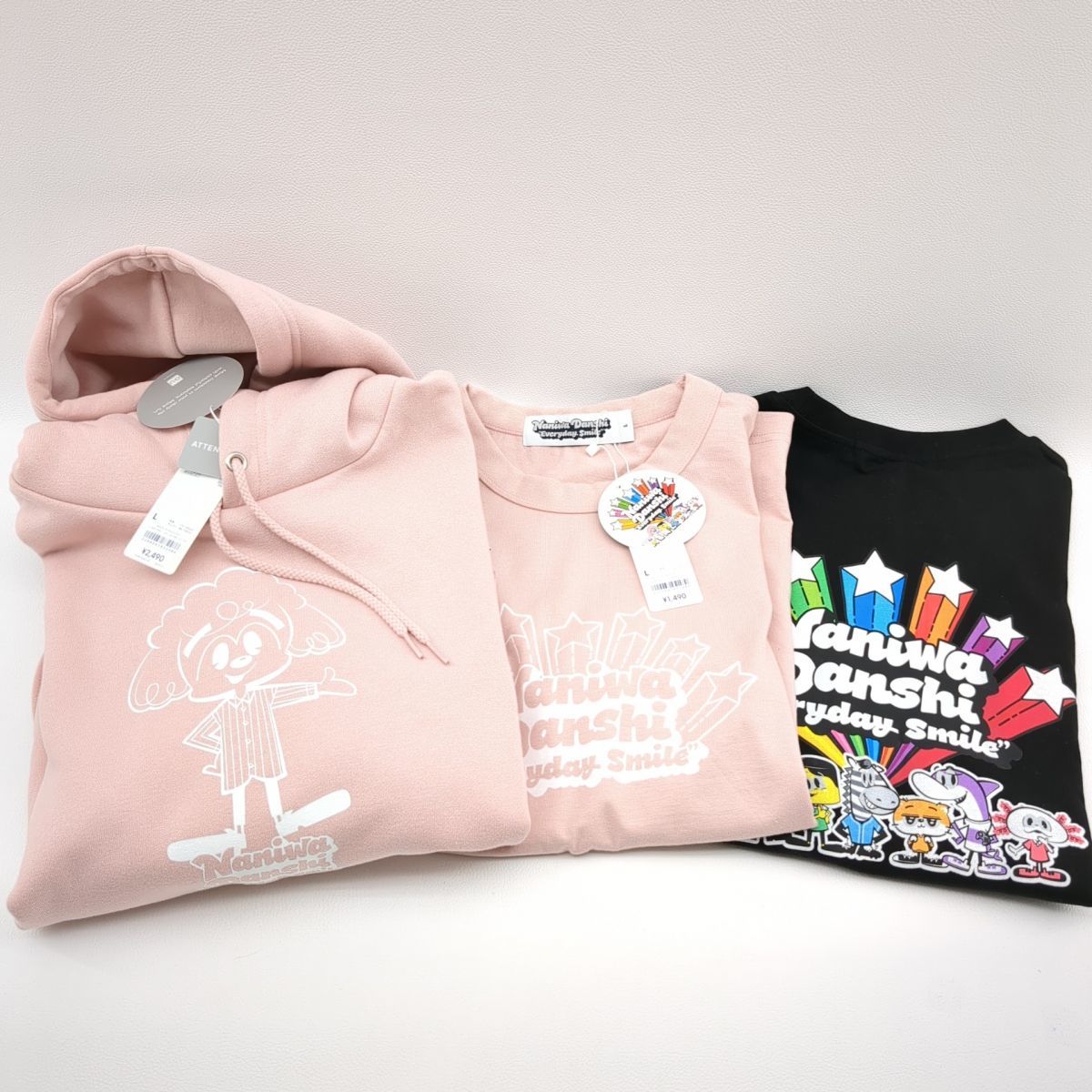 GU×なにわ男子 トップス3点セット SIZE L プルオーバー/Tシャツ/長袖Tシャツ ピンク 道枝駿佑 ブラック ジーユー ◆3109/宮竹店 GU - なにわ男子 GU ヘビーウェイトスウェットプルオーバー Lサイズ