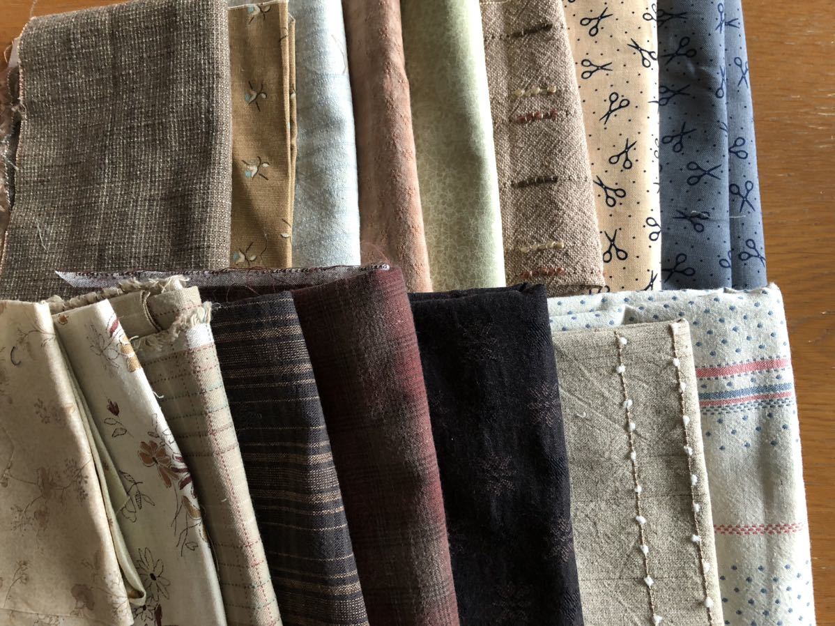 | 商品の特徴 | ピースワークなどに最適な落ち着いた色合いの使いやすいプリント生地や先染め生地です。大量なので、個別のサイズはご容赦いただきたいのですが、通常販売しているカットクロスサイズのものを当方でピースワークに使用した残りが多いです。購入したままのカットクロスもありますが、使用したものが多いので、切り口が直線ではないものが多いです。パッチワークのピースワーク用に、たくさんの種類の布が必要な方にお勧めします。また、ダンボールにぎゅうぎゅうに詰めて発送しますので、たたみじわもご了承いただける方、細かなことを気になさらない方、にお願いいたします。布の重さは、約2.2㎏です。 | ||