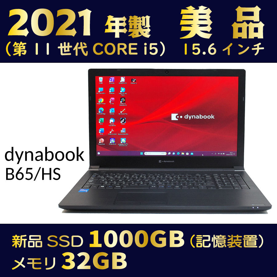 2021年製★第11世代-i5★美品★新品SSD1000GB★メモリ32GB★Windows11★Office★Bluetooth★到着後すぐ使える★領収可★dynabook B65/HS ノートパソコン Office付き 快適 Core i5 第11世代〜第4世代