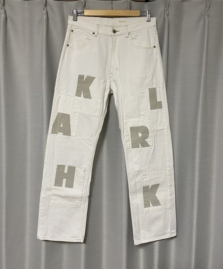 人気☆【Karl Helmut】ロゴプリントデザイン ホワイトデニムパンツ L カールヘルム Karl Helmutカールヘルム 日本製 ビッグロゴプリントコットンTシャツ白