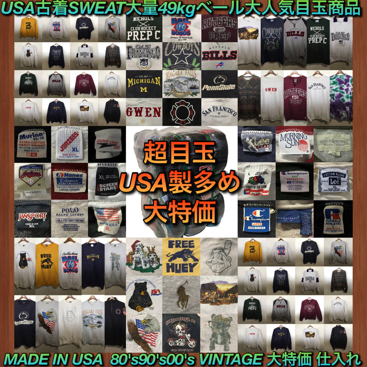 【T257】★超目玉★ アメリカ古着卸オススメSWEAT大量49kgベール目玉商品 80's90's00's VINTAGE アメカジ デザイン豊富 仕入れ Yahoo!オークション -「古着 ベール 仕入れ」の落札相場・落札価格