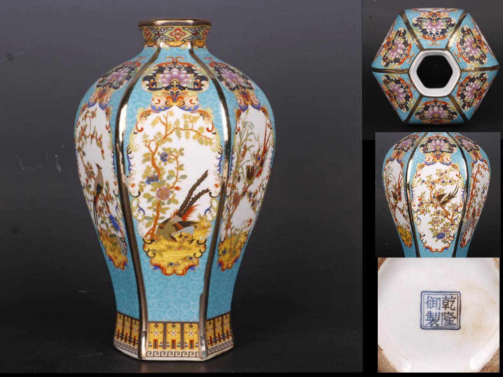 ■清代 乾隆禦制款 琺瑯彩描金花鳥紋 六方梅瓶■高さ24.5cm 直径13.6cm 乾隆王朝 琺瑯彩花鳥六方景徳鎮花瓶|輸入マートの検索結果
