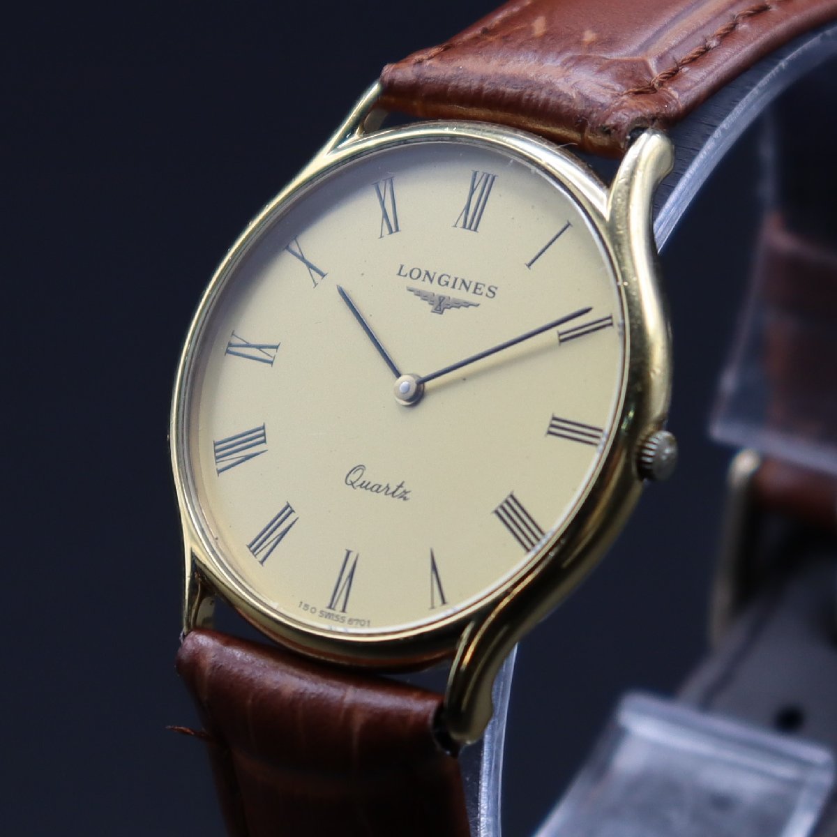 | 商品の特徴 | ■商品詳細 品名LONGINES 型番ーーーーー シリアルナンバー2143**** ケース幅(リューズ込み/3-9時位置)32.3mm ケース厚5.1mm ベルト幅17.4mm 腕回り約14-18.5cm 材質SSケース(ゴールドカラー)&裏蓋SS・国内メーカー新品革ベルト&尾錠 機能クォーツ 商品状態 平置きで24時間動作確認済み、遅れなく稼働中です。電池残量、不明です。リューズ、一段引きで時刻調整可能です。ケース、経年のスレ・小打ち痕ございます。文字盤、微細なチリと小傷み程度で状態良好です。風防ガラス、内側に微細なチリの付着が見受けられますが傷少なくキレイです。リューズ、摩耗しておりますがロンジンロゴマークついております。裏蓋、印字薄れなく刻印鮮明です。新品国内メーカー革ベルト、交換済みです。全体的に状態の良いお品物かと思われますが詳しい状態は画像にてご判断ください。 商品ランクAB その他簡易的ではございますが、出品前に時計全体をアルコール消毒しております。 | ||