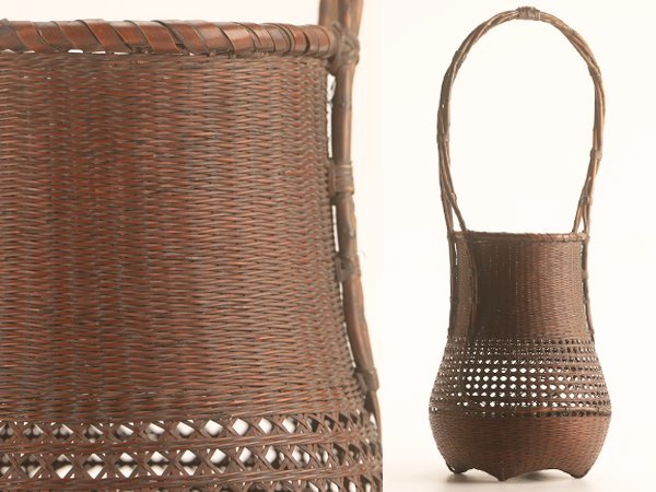 【流】古美術品 時代 竹網細工手付花籠 竹籠 高さ55cm DF991 京都籠師 森田竹阿弥 手付籠 籐巻 細密編 底に彫銘有 竹籠 花入 花生の検索結果